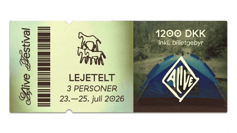 Er du 23 år eller derunder, når Alive Festival 2026 løber af stablen? Så kan du købe og bruge vores ungdomsbillet. Ungdomsbilletten kan anvendes ved at vise gyldigt ID i billetvognen. Der er 100 stk. i salg